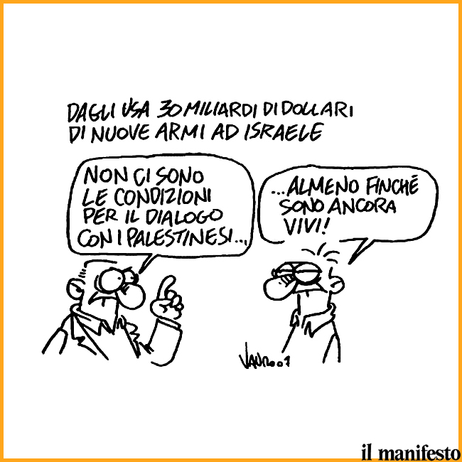 Il manifesto, Le vignette di VauroUsa-Israele, firmato l’accordo sugli aiuti militari Vai alla FOTOGALLERY Vauro – Palestina 2007 Il Manifesto Vai alla FOTOGALLERY Vauro – Palestina condividi/share Fai clic per inviare un link a un amico via e-mail (Si apre in una nuova finestra) E-mail Fai clic per condividere su Facebook (Si apre in una nuova finestra) Facebook Fai clic per condividere su WhatsApp (Si apre in una nuova finestra) WhatsApp Fai clic per condividere su Telegram (Si apre in una nuova finestra) Telegram Fai clic per condividere su Mastodon (Si apre in una nuova finestra) Mastodon Fai clic per condividere su Bluesky (Si apre in una nuova finestra) Bluesky Correlati