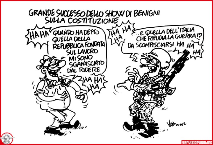 Le vignette di Vauro, Servizio PubblicoBenigni celebra in tv la Costituzione 20.12.2012 Servizio Pubblico “La più bella del mondo”, Benigni celebra in tv la Costituzione condividi/share Fai clic per inviare un link a un amico via e-mail (Si apre in una nuova finestra) E-mail Fai clic per condividere su Facebook (Si apre in una nuova finestra) Facebook Fai clic per condividere su WhatsApp (Si apre in una nuova finestra) WhatsApp Fai clic per condividere su Telegram (Si apre in una nuova finestra) Telegram Fai clic per condividere su Mastodon (Si apre in una nuova finestra) Mastodon Fai clic per condividere su Bluesky (Si apre in una nuova finestra) Bluesky Correlati