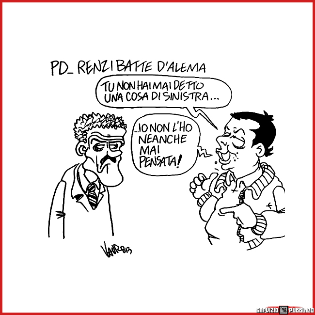 Le vignette di Vauro, Servizio PubblicoPd, Renzi batte D’Alema TUTTO RENZI VAI ALLA FOTOGALLERY TUTTO RENZI VAI ALLA FOTOGALLERY Servizio Pubblico, 21.11.2013 La congiura degli innocenti condividi/share Fai clic per inviare un link a un amico via e-mail (Si apre in una nuova finestra) E-mail Fai clic per condividere su Facebook (Si apre in una nuova finestra) Facebook Fai clic per condividere su WhatsApp (Si apre in una nuova finestra) WhatsApp Fai clic per condividere su Telegram (Si apre in una nuova finestra) Telegram Fai clic per condividere su Mastodon (Si apre in una nuova finestra) Mastodon Fai clic per condividere su Bluesky (Si apre in una nuova finestra) Bluesky Correlati