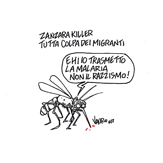 Il Fatto Quotidiano, Le vignette di VauroMalaria e zanzara killer Acquista la vignetta originale su Vauro SHOP Zanzara killer, tutta colpa dei migranti… Il Fatto, 7 settembre 2017 condividi/share Fai clic per inviare un link a un amico via e-mail (Si apre in una nuova finestra) E-mail Fai clic per condividere su Facebook (Si apre in una nuova finestra) Facebook Fai clic per condividere su WhatsApp (Si apre in una nuova finestra) WhatsApp Fai clic per condividere su Telegram (Si apre in una nuova finestra) Telegram Fai clic per condividere su Mastodon (Si apre in una nuova finestra) Mastodon Fai clic per condividere su Bluesky (Si apre in una nuova finestra) Bluesky Correlati