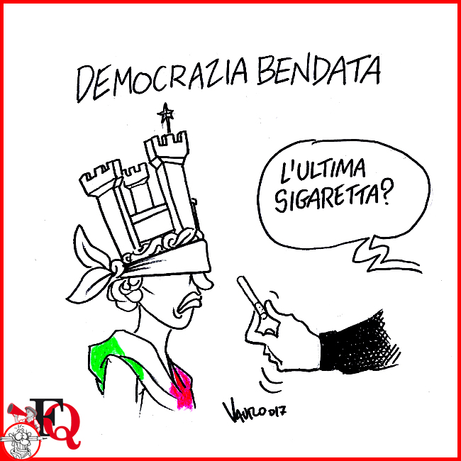 Legge elettorale – M5S. Grillo, Di Maio e Di Battista bendati sul palco per protesta contro il Rosatellum