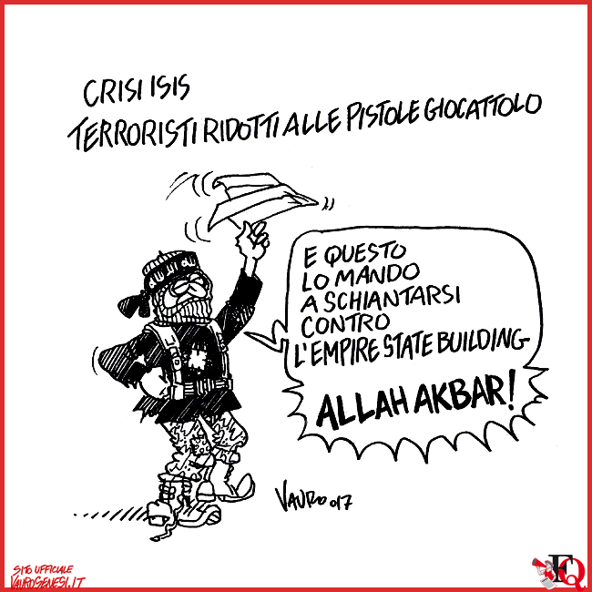 Il Fatto Quotidiano, Le vignette di VauroCrisi Isis Acquista la vignetta originale sul mio Shop ufficiale 02.11.2017 Il Fatto Quotidiano Attentato a New York. condividi/share Fai clic per inviare un link a un amico via e-mail (Si apre in una nuova finestra) E-mail Fai clic per condividere su Facebook (Si apre in una nuova finestra) Facebook Fai clic per condividere su WhatsApp (Si apre in una nuova finestra) WhatsApp Fai clic per condividere su Telegram (Si apre in una nuova finestra) Telegram Fai clic per condividere su Mastodon (Si apre in una nuova finestra) Mastodon Fai clic per condividere su Bluesky (Si apre in una nuova finestra) Bluesky Correlati