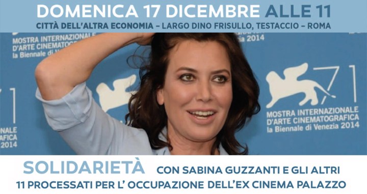 Il 24 gennaio 2018, infatti, inizia il processo contro 12 persone accusate di aver “occupato” l’ex cinema Palazzo. “Ci processano per aver contribuito a impedire una cosa illegale: trasformare uncinema dei primi del ‘900 in una sala giochi di 1000 mq nel quartiere universitario di Roma!” sottolinea su FacebookSabina Guzzanti, che ringrazia i colleghi per la solidarietà.