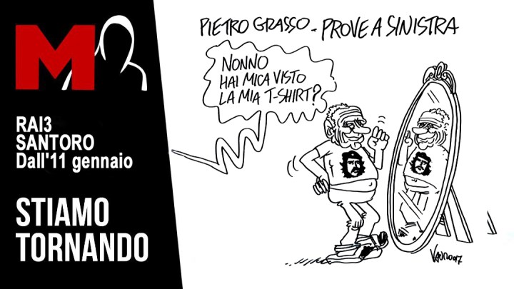 "M" di Michele Santoro, Le vignette di VauroGrasso, prove a sinistra! – M 12.12.2017 – La mia nuova vignetta per M di Michele Santoro su Rai 3, dall’11 gennaio 2018. Tutto M sul mio sito condividi/share Fai clic per inviare un link a un amico via e-mail (Si apre in una nuova finestra) E-mail Fai clic per condividere su Facebook (Si apre in una nuova finestra) Facebook Fai clic per condividere su WhatsApp (Si apre in una nuova finestra) WhatsApp Fai clic per condividere su Telegram (Si apre in una nuova finestra) Telegram Fai clic per condividere su Mastodon (Si apre in una nuova finestra) Mastodon Fai clic per condividere su Bluesky (Si apre in una nuova finestra) Bluesky Correlati