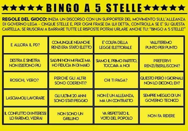 Articoli, NewsBINGO A 5 STELLE – Gioca anche tu! Giochi Estate 2018! Inizia un discorso con un supporter del moVimento sull’alleanza di governo Lega – M5S e… Fonte: web condividi/share Fai clic per inviare un link a un amico via e-mail (Si apre in una nuova finestra) E-mail Fai clic per condividere su Facebook (Si apre in una nuova finestra) Facebook Fai clic per condividere su WhatsApp (Si apre in una nuova finestra) WhatsApp Fai clic per condividere su Telegram (Si apre in una nuova finestra) Telegram Fai clic per condividere su Mastodon (Si apre in una nuova finestra) Mastodon Fai clic per condividere su Bluesky (Si apre in una nuova finestra) Bluesky Correlati