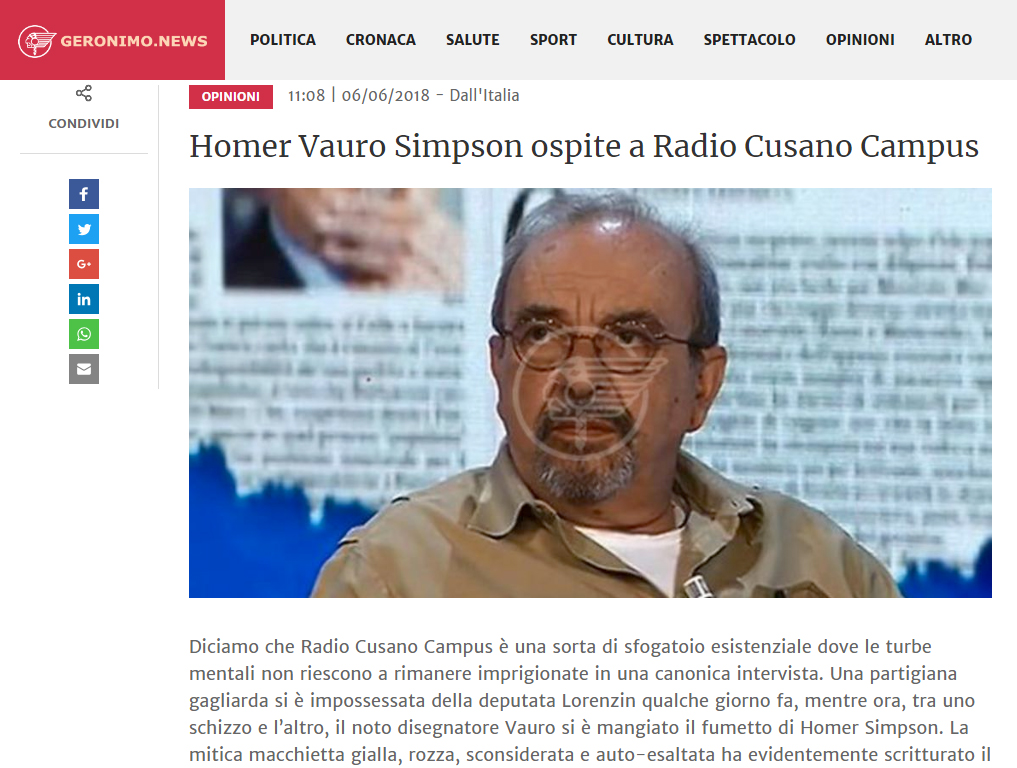 Geronimo news – “Homer Vauro Simpson ospite a Radio Cusano Campus” 06/07/2018