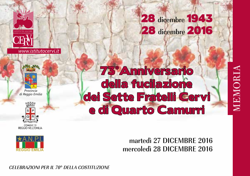È ancora buio alle 6.30 del 28 dicembre 1943 quando le milizie fasciste fucilano i sette fratelli Cervi e Quarto Camurri al poligono di tiro di Reggio Emilia. L’esecuzione, preceduta da torture sui prigionieri, è tenuta nascosta e si inserisce nell’adesione fascista alla pratica stragista. Nel giro di un mese e mezzo gli uomini della Repubblica sociale italiana compiono a novembre la strage al Castello di Ferrara (11 vittime) e fucilano 13 partigiani tra il 7 e il 22 dicembre in provincia di Bergamo. Il 30 gennaio, ancora nel reggiano, è fucilato don Pasquino Borghi che aveva collaborato con i Cervi, assieme ad altri otto partigiani.