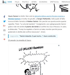 22/06/2018 LIBERO: “Vauro senza limiti, l’ultima porcheria su Matteo Salvini: tortura i bambini e gode”