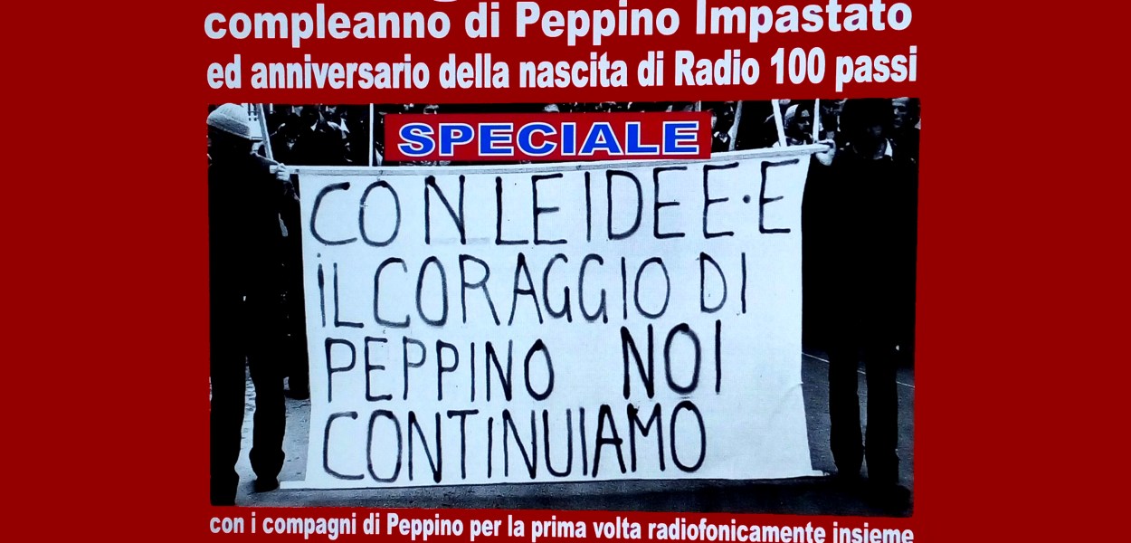Sabato 5 Gennaio alle ore 17, in occasione del compleanno di Peppino Impastato e per l’anniversario di Radio 100 passi, sarà realizzato lo speciale radiofonico “Con le idee ed il coraggio di Peppino noi continuiamo”, in diretta radio da Cinisi. Per la prima volta saranno radiofonicamente insieme i familiari ed i compagni di Peppino. Sarà l’occasione per ascoltare i ricordi, gli aneddoti e le riflessioni di quello che fu il collettivo che faceva riferimento a Peppino. In anni di grande fermento, in una Cinisi la cui densità mafiosa era molto alta, quella fu la generazione che cercò di portare avanti un cambiamento sociale mettendo in discussione la mafia ed ogni altra forma di oppressione. Questo 5 Gennaio Peppino avrebbe compiuto 71 anni, oggi non c’è più a causa del dominio mafioso che ha voluto interromperne le sue attività di denuncia e di impegno, eppure la voce e gli ideali di Peppino continuano a vivere ed a crescere in chi ha continuato a portarne avanti la memoria e nei giovani che ogni giorno sono ispirati dal suo coraggio e dalla sua storia di lotta per la libertà. Segui la diretta su www.rete100passi.net