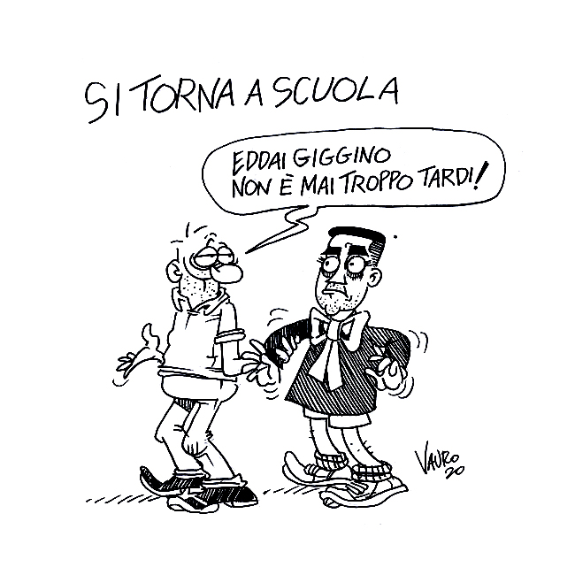 Le vignette di VauroSi torna a scuola — Le vignette di Vauro 13/09/2020, La7 “L’Aria di Domenica”Si torna a scuola. Eddai Giggino, non è mai troppo tardi! Il tuo indirizzo mail… Abbonati al mio blog L’ULTIMA vignetta di Vauro 🟠 Acquista il disegno originale (shop ufficiale) condividi/share Fai clic per inviare un link a un amico via e-mail (Si apre in una nuova finestra) E-mail Fai clic per condividere su Facebook (Si apre in una nuova finestra) Facebook Fai clic per condividere su WhatsApp (Si apre in una nuova finestra) WhatsApp Fai clic per condividere su Telegram (Si apre in una nuova finestra) Telegram Fai clic per condividere su Mastodon (Si apre in una nuova finestra) Mastodon Fai clic per condividere su Bluesky (Si apre in una nuova finestra) Bluesky Correlati