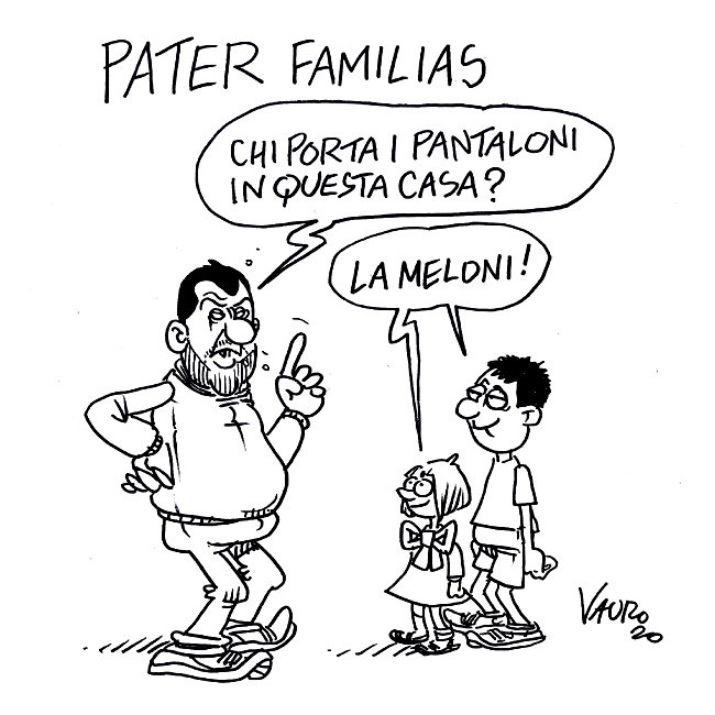 PATER FAMILIAS. Salvini: “Chi porta i pantaloni in questa casa?”. “La Meloni!”