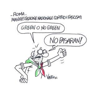 16/10/2021, Vauro per Il Fatto (in edicola) — Roma sabato 16 ottobre 2021, manifestazione nazionale antifascista