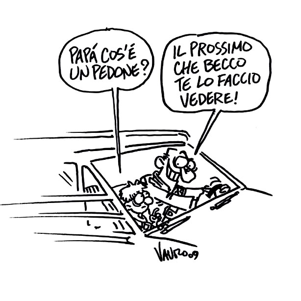 Piero Angela: “Rispettare gli utenti deboli della strada significa rispettare se stessi e rendere più vivibili le città”. Siamo Tutti Pedoni lavora con l’obiettivo di ampliare lo sguardo nell’affrontare i temi della sicurezza dei pedoni e degli altri utenti vulnerabili della strada. Le vignette di Vauro!