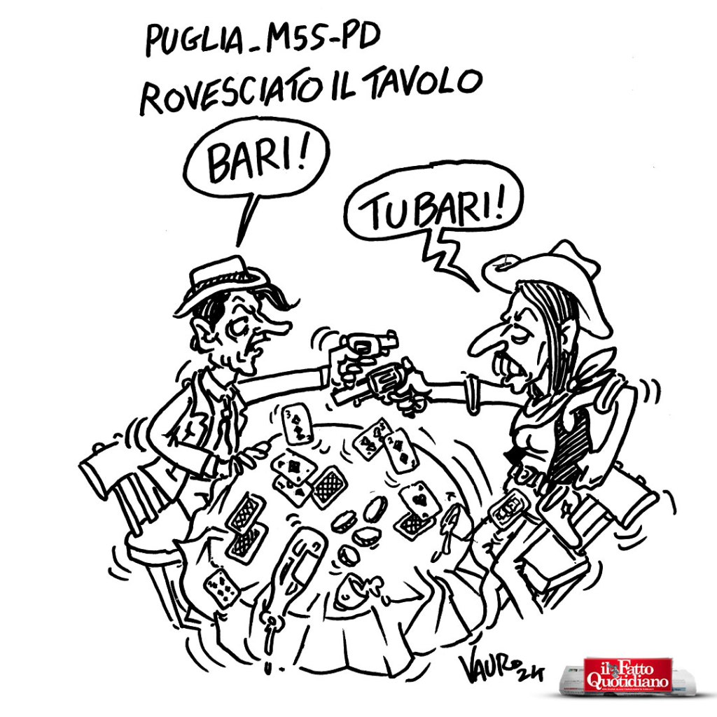 Inchiesta Bari, tramonta il “campo largo”… – Vauro (Il Fatto, 6 apr 2024)