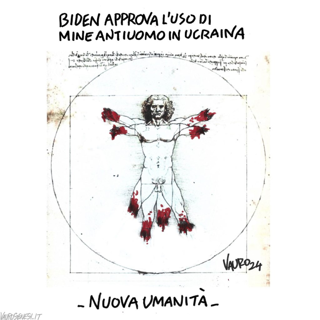 L'ultima vignetta di Vauro, Le vignette di VauroBiden approva l’uso di mine antiuomo in Ucraina… (20 nov 2024) Il tuo indirizzo mail… Abbonati al mio blog L’ULTIMA vignetta di Vauro 🟠 Il disegno originale sullo shop ufficiale condividi/share Fai clic per inviare un link a un amico via e-mail (Si apre in una nuova finestra) E-mail Fai clic per condividere su Facebook (Si apre in una nuova finestra) Facebook Fai clic per condividere su WhatsApp (Si apre in una nuova finestra) WhatsApp Fai clic per condividere su Telegram (Si apre in una nuova finestra) Telegram Fai clic per condividere su Mastodon (Si apre in una nuova finestra) Mastodon Fai clic per condividere su Bluesky (Si apre in una nuova finestra) Bluesky Correlati