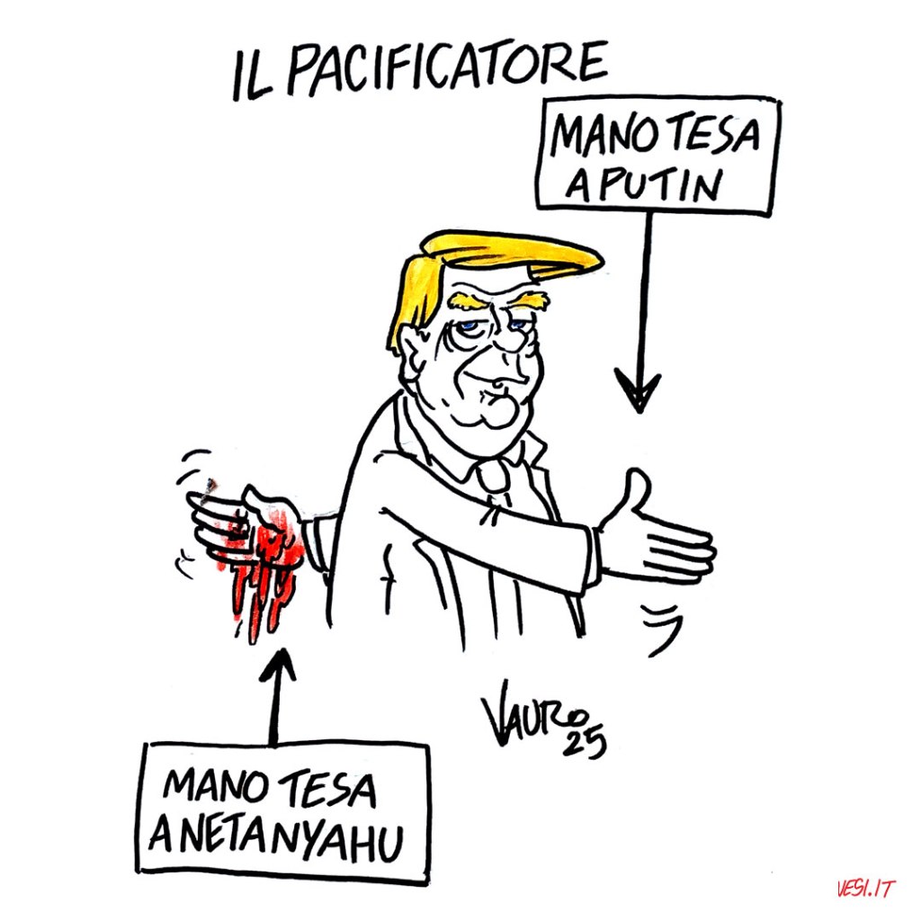 L'ultima vignetta di Vauro, Le vignette di VauroIl Pacificatore (19 mar 2025) Il tuo indirizzo mail… Abbonati al mio blog L’ULTIMA vignetta di Vauro 🟠 Il disegno originale sullo shop ufficiale condividi/share Fai clic per inviare un link a un amico via e-mail (Si apre in una nuova finestra) E-mail Fai clic per condividere su Facebook (Si apre in una nuova finestra) Facebook Fai clic per condividere su WhatsApp (Si apre in una nuova finestra) WhatsApp Fai clic per condividere su Telegram (Si apre in una nuova finestra) Telegram Fai clic per condividere su Mastodon (Si apre in una nuova finestra) Mastodon Fai clic per condividere su Bluesky (Si apre in una nuova finestra) Bluesky Correlati