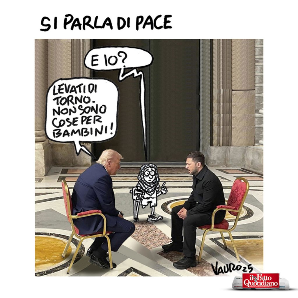 Il Fatto Quotidiano, L'ultima vignetta di Vauro, Le vignette di VauroCose da grandi (Il Fatto, 29 apr 2025) Il tuo indirizzo mail… Abbonati al mio blog L’ULTIMA vignetta di Vauro 🟠 Il disegno originale sullo shop ufficiale condividi/share Fai clic per inviare un link a un amico via e-mail (Si apre in una nuova finestra) E-mail Fai clic per condividere su Facebook (Si apre in una nuova finestra) Facebook Fai clic per condividere su WhatsApp (Si apre in una nuova finestra) WhatsApp Fai clic per condividere su Telegram (Si apre in una nuova finestra) Telegram Fai clic per condividere su Mastodon (Si apre in una nuova finestra) Mastodon Fai clic per condividere su Bluesky (Si apre in una nuova finestra) Bluesky Correlati