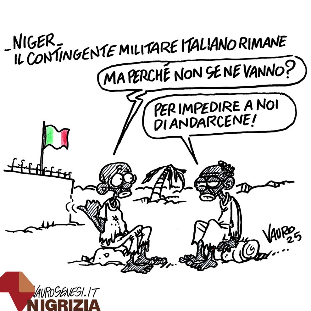 L'ultima vignetta di Vauro, Le vignette di Vauro, NigriziaNiger, il contingente italiano rimane – Vauro (Nigrizia, mag 2025) Il tuo indirizzo mail… Abbonati al mio blog Tutto NIGRIZIA sul mio sitoDisegni originali sullo shop ufficiale condividi/share Fai clic per inviare un link a un amico via e-mail (Si apre in una nuova finestra) E-mail Fai clic per condividere su Facebook (Si apre in una nuova finestra) Facebook Fai clic per condividere su WhatsApp (Si apre in una nuova finestra) WhatsApp Fai clic per condividere su Telegram (Si apre in una nuova finestra) Telegram Fai clic per condividere su Mastodon (Si apre in una nuova finestra) Mastodon Fai clic per condividere su Bluesky (Si apre in una nuova finestra) Bluesky Correlati
