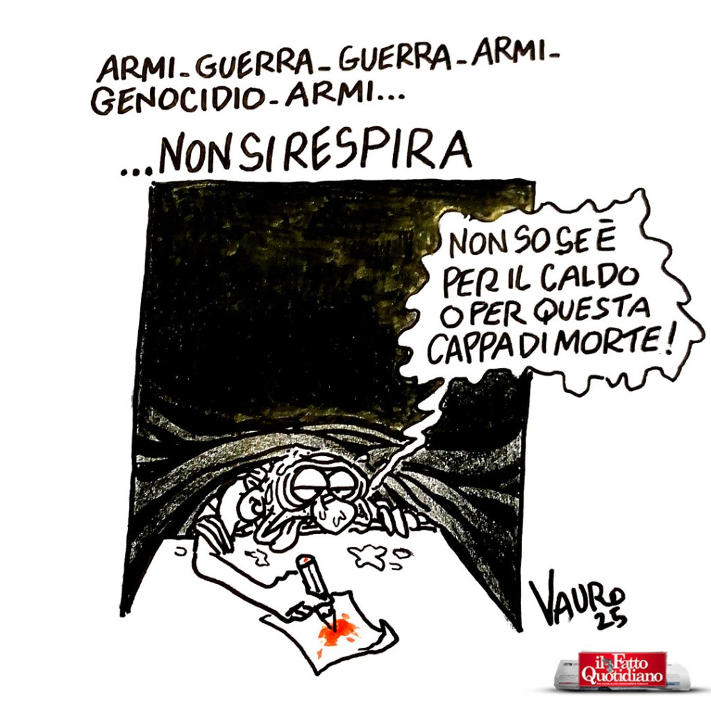 Il Fatto Quotidiano, L'ultima vignetta di Vauro, Le vignette di VauroNon si respira… (Il Fatto, 8 lug 2025) Il tuo indirizzo mail… Abbonati al mio blog L’ULTIMA vignetta di Vauro 🟠 Il disegno originale sullo shop ufficiale condividi/share Invia un link a un amico via e-mail (Si apre in una nuova finestra) E-mail Condividi su Facebook (Si apre in una nuova finestra) Facebook Condividi su WhatsApp (Si apre in una nuova finestra) WhatsApp Condividi su Telegram (Si apre in una nuova finestra) Telegram Condividi su Mastodon (Si apre in una nuova finestra) Mastodon Condividi su Bluesky (Si apre in una nuova finestra) Bluesky Correlati