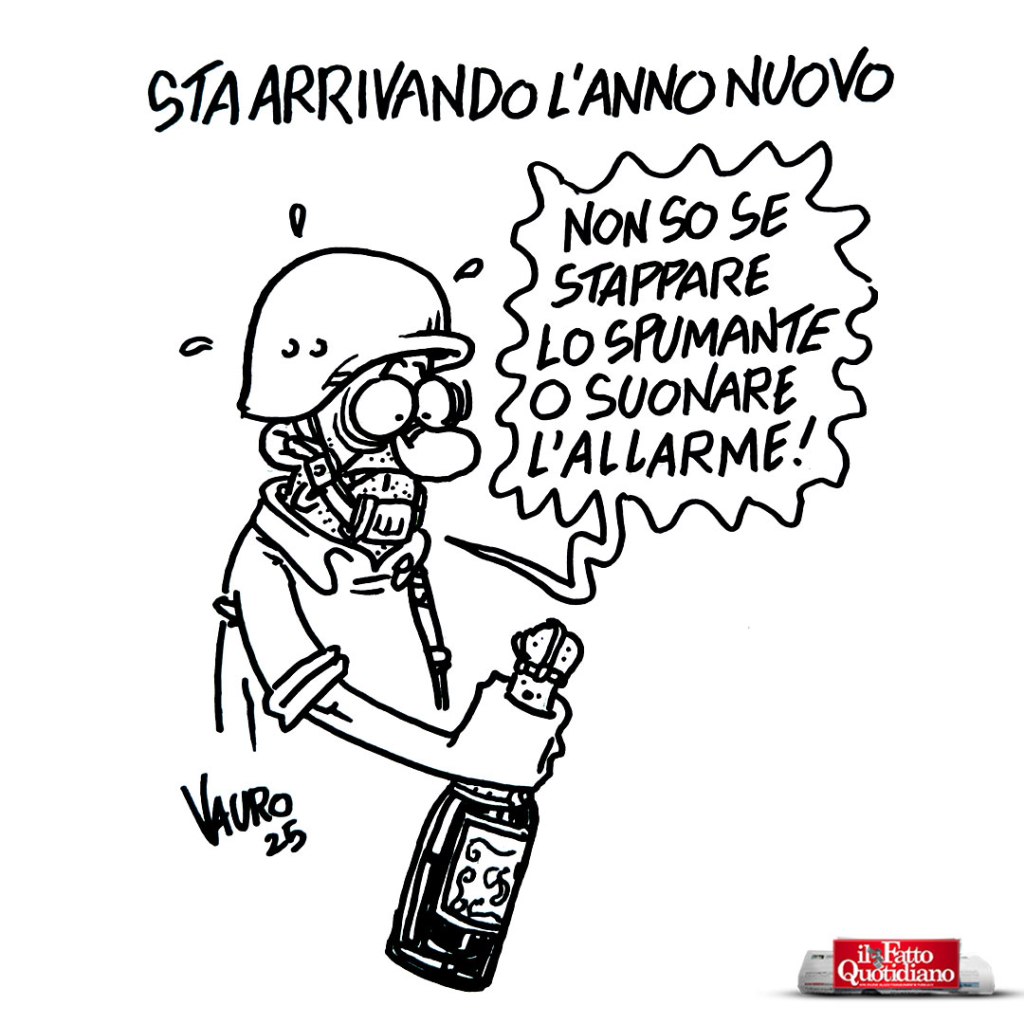 Il Fatto Quotidiano, L'ultima vignetta di Vauro, Le vignette di VauroSta arrivando l’anno nuovo (Il Fatto, 27 dic 2025) Il tuo indirizzo mail… Abbonati al mio blog L’ULTIMA vignetta di Vauro 🟠 Il disegno originale sullo shop ufficiale condividi/share Email a link to a friend (Si apre in una nuova finestra) E-mail Condividi su Facebook (Si apre in una nuova finestra) Facebook Condividi su WhatsApp (Si apre in una nuova finestra) WhatsApp Condividi su Telegram (Si apre in una nuova finestra) Telegram Share on Mastodon (Si apre in una nuova finestra) Mastodon Condividi su Bluesky (Si apre in una nuova finestra) Bluesky Correlati