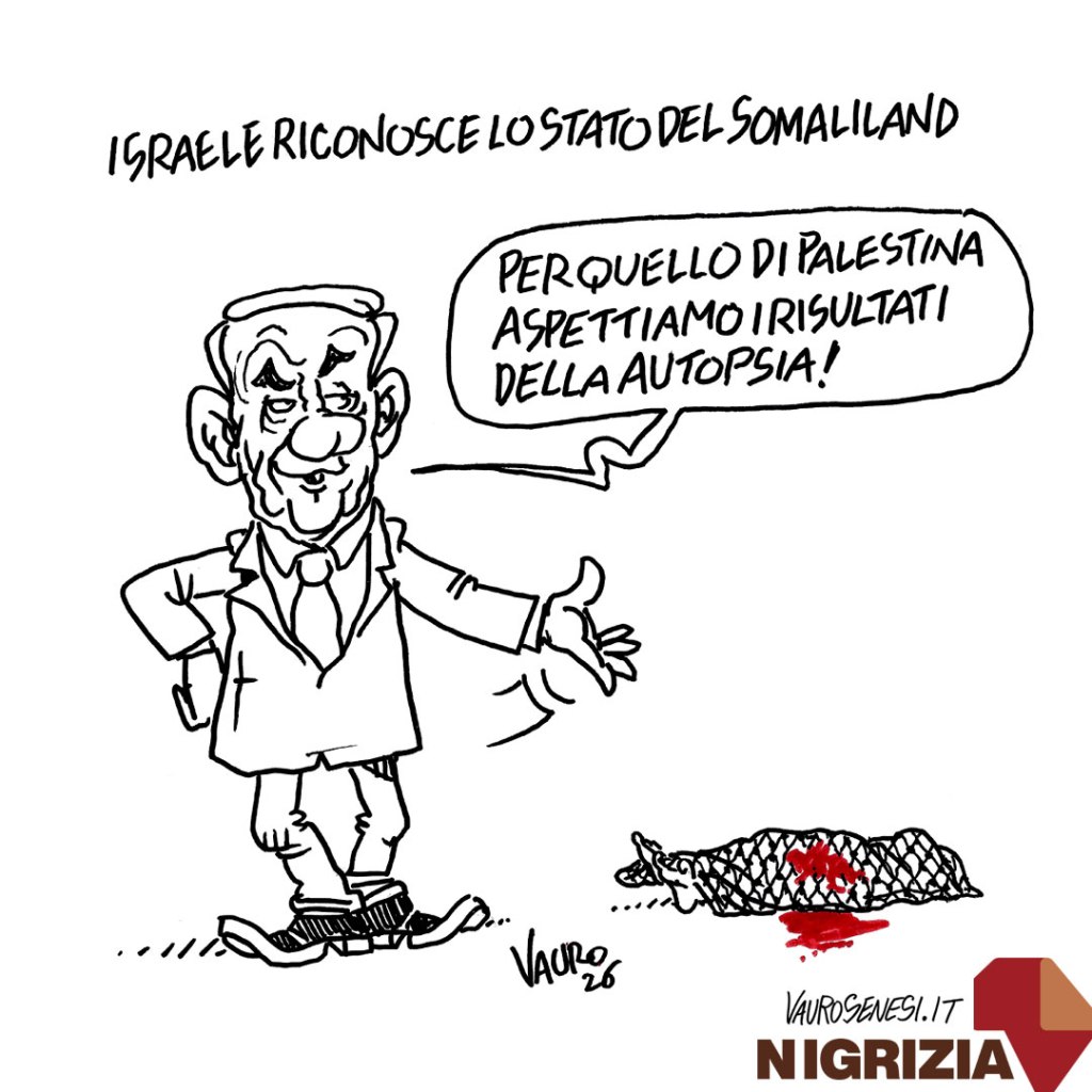 L'ultima vignetta di Vauro, Le vignette di Vauro, NigriziaIsraele riconosce il Somaliland (Nigrizia, feb 2026) La nuova vignetta di Vauro per NIGRIZIA https://www.nigrizia.ithttps://www.nigrizia.it/riviste-nigrizia Il tuo indirizzo mail… Abbonati al mio blog Tutto NIGRIZIA sul mio sitoDisegni originali sullo shop ufficiale condividi/share Invia un link a un amico via e-mail (Si apre in una nuova finestra) E-mail Condividi su Facebook (Si apre in una nuova finestra) Facebook Condividi su WhatsApp (Si apre in una nuova finestra) WhatsApp Condividi su Telegram (Si apre in una nuova finestra) Telegram Condividi su Mastodon (Si apre in una nuova finestra) Mastodon Condividi su Bluesky (Si apre in una nuova finestra) Bluesky Correlati