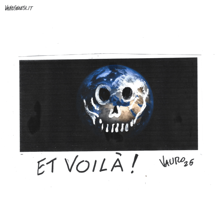 L'ultima vignetta di Vauro, Le vignette di Vauro, vaurosenesi-itEt voilà! (28 feb 2026) Il tuo indirizzo mail… Abbonati al mio blog L’ULTIMA vignetta di Vauro 🟠 Il disegno originale sullo shop ufficiale condividi/share Invia un link a un amico via e-mail (Si apre in una nuova finestra) E-mail Condividi su Facebook (Si apre in una nuova finestra) Facebook Condividi su WhatsApp (Si apre in una nuova finestra) WhatsApp Condividi su Telegram (Si apre in una nuova finestra) Telegram Condividi su Mastodon (Si apre in una nuova finestra) Mastodon Condividi su Bluesky (Si apre in una nuova finestra) Bluesky Correlati