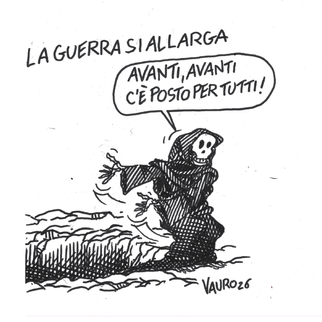 Il Fatto Quotidiano, L'ultima vignetta di Vauro, Le vignette di VauroLa guerra si allarga… (17 mar 2026) Digita la tua e-mail… Iscriviti L’ULTIMA vignetta di Vauro condividi/share Invia un link a un amico via e-mail (Si apre in una nuova finestra) E-mail Condividi su Facebook (Si apre in una nuova finestra) Facebook Condividi su WhatsApp (Si apre in una nuova finestra) WhatsApp Condividi su Telegram (Si apre in una nuova finestra) Telegram Condividi su Mastodon (Si apre in una nuova finestra) Mastodon Condividi su Bluesky (Si apre in una nuova finestra) Bluesky Correlati