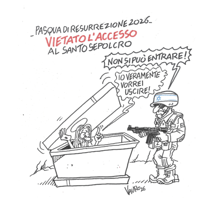Il Fatto Quotidiano, L'ultima vignetta di Vauro, Le vignette di VauroVietato l’accesso al Santo Sepolcro (Il Fatto, 31 mar 2026) Digita la tua e-mail… Iscriviti L’ULTIMA vignetta di Vauro condividi/share Invia un link a un amico via e-mail (Si apre in una nuova finestra) E-mail Condividi su Facebook (Si apre in una nuova finestra) Facebook Condividi su WhatsApp (Si apre in una nuova finestra) WhatsApp Condividi su Telegram (Si apre in una nuova finestra) Telegram Condividi su Mastodon (Si apre in una nuova finestra) Mastodon Condividi su Bluesky (Si apre in una nuova finestra) Bluesky Correlati