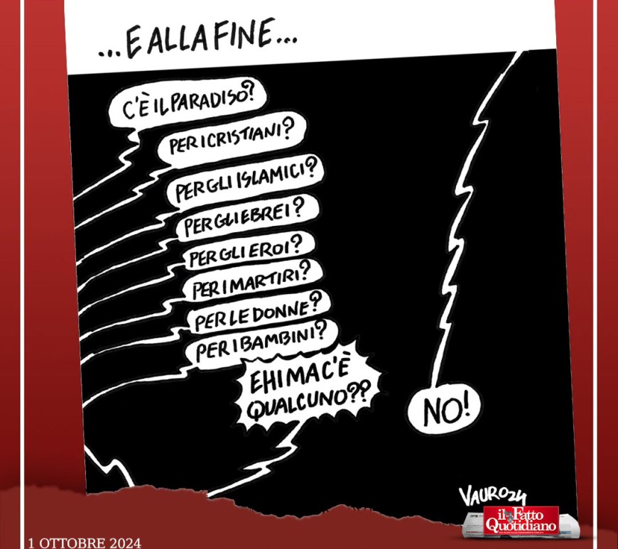 Le vignette di Vauro | In edicola con Il Fatto Quotidiano Continua a leggere Armi, guerra, massacri… (Il Fatto, 26 set 2024)