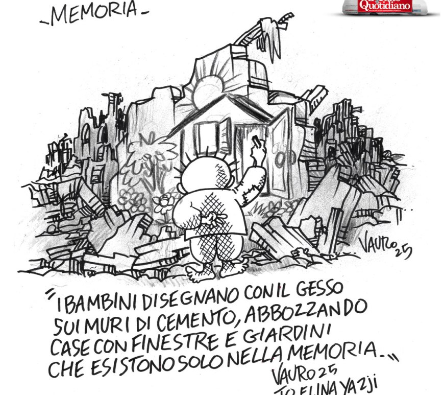 Le vignette di Vauro | In edicola con Il Fatto Quotidiano Continua a leggere Gaza, Elina Yazji: “Siamo tornati qui, dove era casa” (Il Fatto, 14 ott 2025)