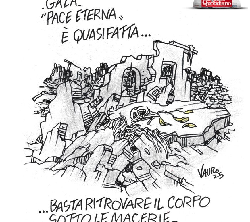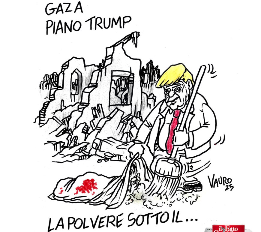 Le vignette di Vauro | In edicola con Il Fatto Quotidiano Continua a leggere Gaza, piano “Pace eterna” (Il Fatto, 18 ott 2025)