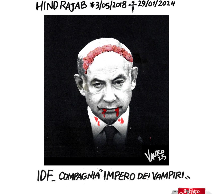 Le vignette di Vauro | In edicola con Il Fatto Quotidiano Continua a leggere Hind Rajab, 3/05/2018 – 29/01/2024 (Il Fatto, 23 ott 2025)