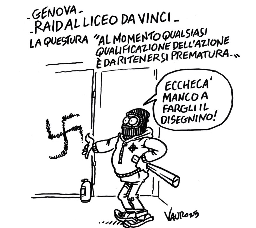 Agli studenti del Liceo Vinci di Genova. Vauro Continua a leggere Genova, raid fascista al liceo Da Vinci occupato (27 ott 2025)