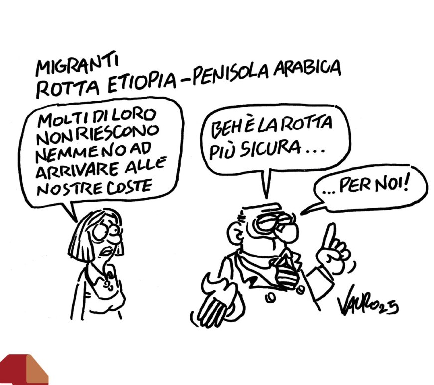 La nuova vignette di Vauro per il mensile Nigrizia Continua a leggere Migranti, rotta Etiopia… (Nigrizia, nov 2025)