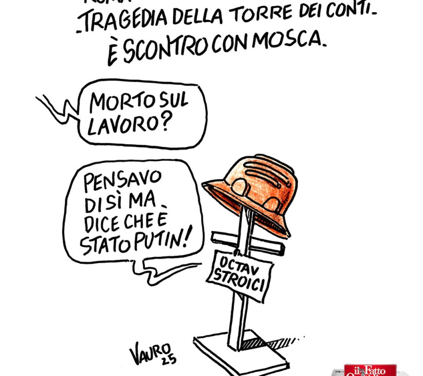 Le vignette di Vauro | In edicola con Il Fatto Quotidiano Continua a leggere Octav Stroici, morto l’operaio intrappolato nella Torre dei Conti (Il Fatto, 6 nov 2025)