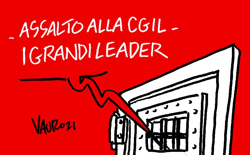 13/10/2021, Vauro per LEFT Continua a leggere ASSALTO CGIL, i grandi leader… La vignetta di Vauro