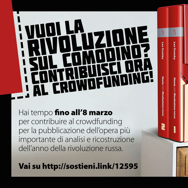 Fino all’8 marzo 2017 [CROWDFUNDING] 1917-2017 – Un viaggio tra le parole della rivoluzione Continua a leggere [CROWDFUNDING] 1917-2017 ROAD TO REVOLUTION! Un viaggio tra le parole della rivoluzione – Fino all’8 marzo