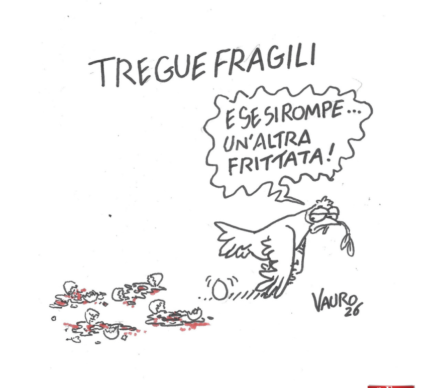 Le vignette di Vauro | In edicola con Il Fatto Quotidiano Continua a leggere Tregue fragili (Il Fatto, 18 aprile 2026)
