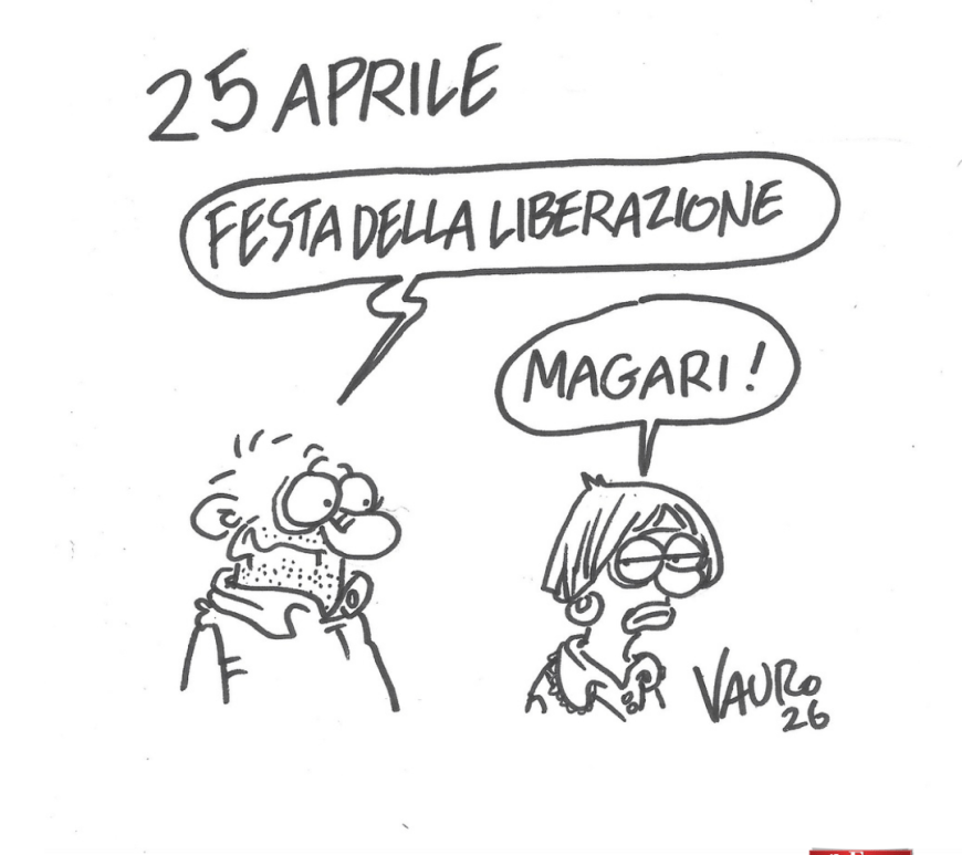 Le vignette di Vauro | In edicola con Il Fatto Quotidiano Continua a leggere Liberazione! (Il Fatto, 23 aprile 2026)