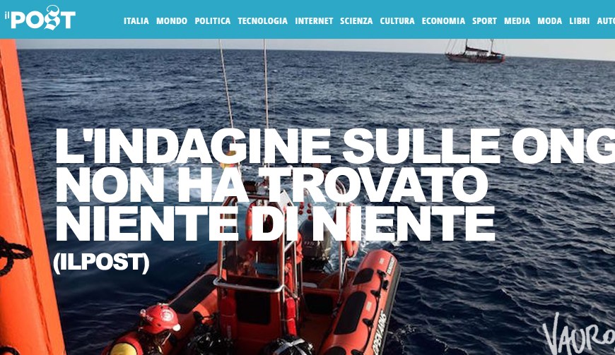 21/06/2018 ILPOST – “L’indagine era stata aperta contro ignoti e prevedeva il reato di associazione a delinquere finalizzata all’immigrazione clandestina: un’accusa molto grave. I magistrati non si sono limitati a smontare l’accusa, ma hanno anche difeso l’attività delle ong” Continua a leggere L’indagine sulle ong non ha trovato niente di niente – ILPOST