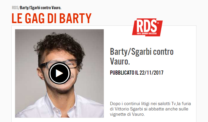 22/11/2017 – RDS.it – Dopo i continui litigi nei salotti Tv,la furia di Vittorio Sgarbi si abbatte anche sulle vignette di Vauro… Continua a leggere Le gag di Barty – Sgarbi contro Vauro [RDS]
