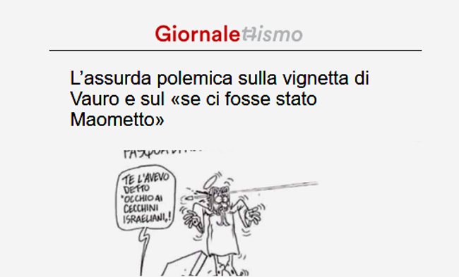 03/04/2018 GIORNALETTISMO – Una vignetta à la Charlie Hebdo. E il vignettista Vauro finisce nel mirino dei social network… Continua a leggere L’assurda polemica sulla vignetta di Vauro e sul «se ci fosse stato Maometto»