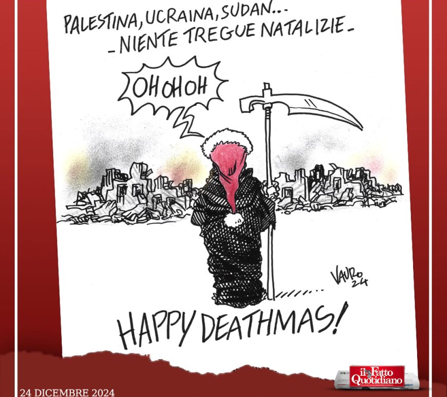 Le vignette di Vauro | In edicola con Il Fatto Quotidiano Continua a leggere Niente tregue natalizie (Il Fatto, 24 dic 2024)
