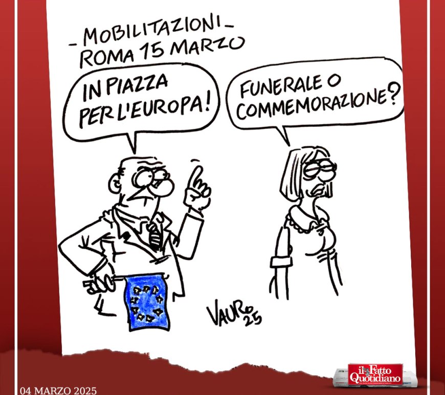Le vignette di Vauro | In edicola con Il Fatto Quotidiano Continua a leggere Piazza del Popolo per l’Europa (Il Fatto, 4 mar 2025)