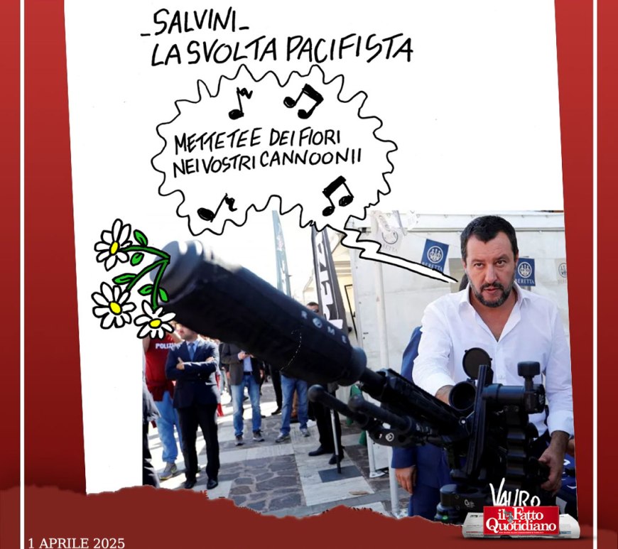 Le vignette di Vauro | In edicola con Il Fatto Quotidiano Continua a leggere Salvini pacifista (Il Fatto, 1 apr 2025)